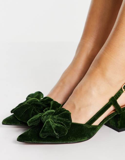 Zapatos verdes de tac n medio con lazo de terciopelo Spring de ASOS DESIGN Very well made.
