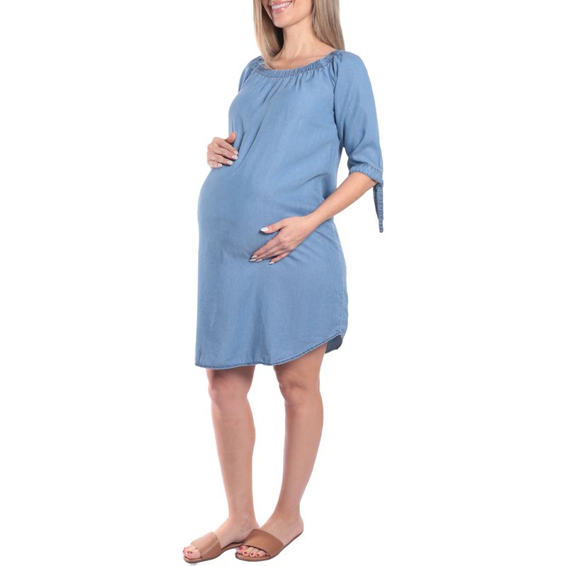 Vestido maternal Sabrina casual celeste mangas 3 4 para dama Very well made.