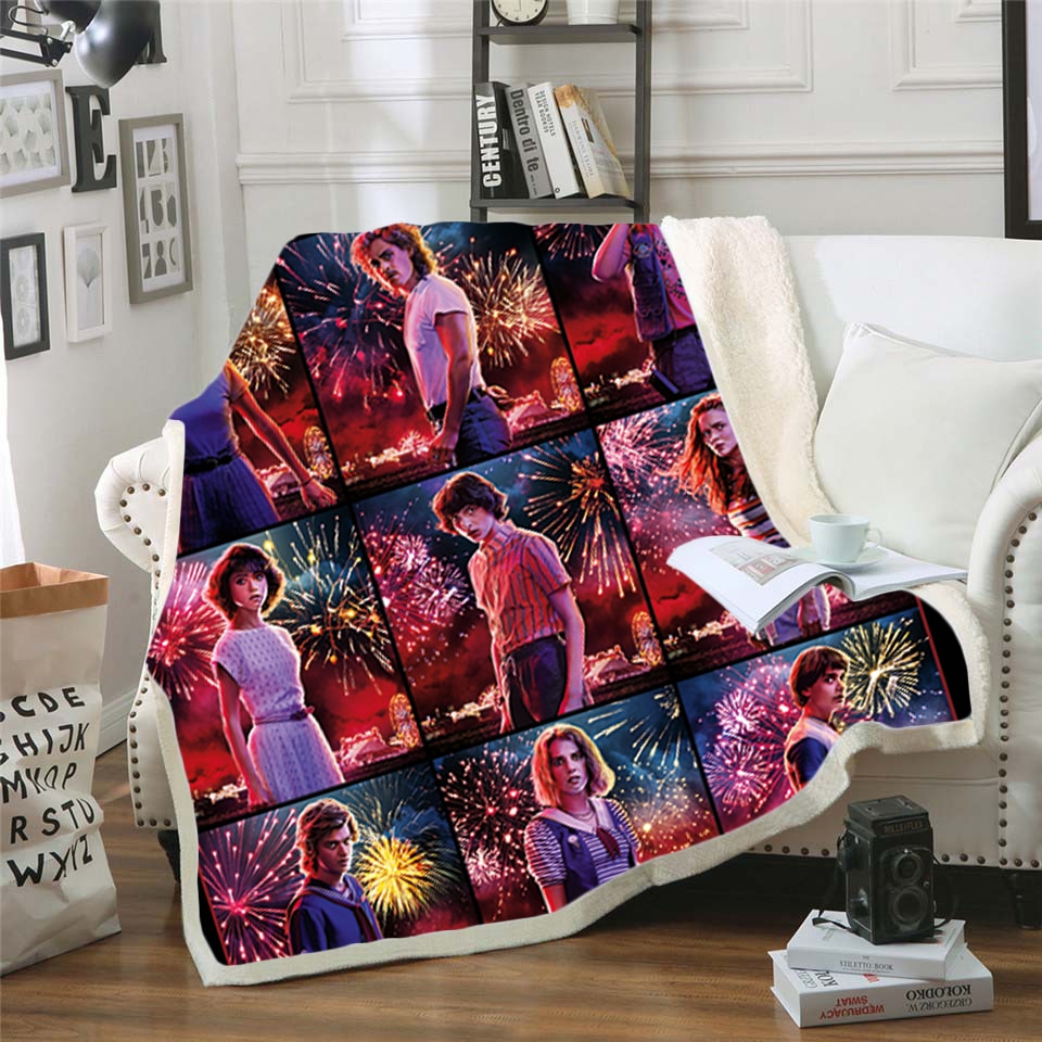 stranger things 3D Impresi n Manta De Felpa Adulto Moda Edredones Casa Oficina Lavable Edred n Casual Ni os Sherpa 40 50inch Very well made.
