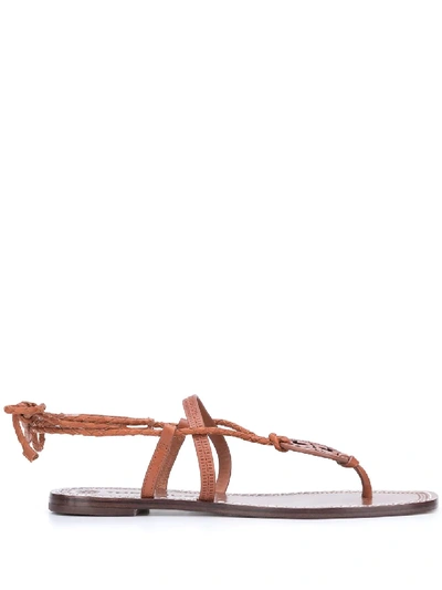Tory Burch Miller Braided Ankle Tie Logo Sandal In Dark Ambra Very well made.