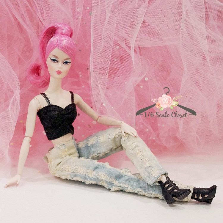 BARBIE FASHION FEVER TOP DISTRESSED JEANS FITS FASHIONISTA MODEL Very well made.