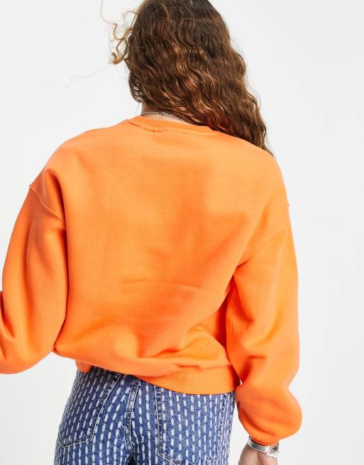 Bershka high neck collegiate sweat in orange Very well made.