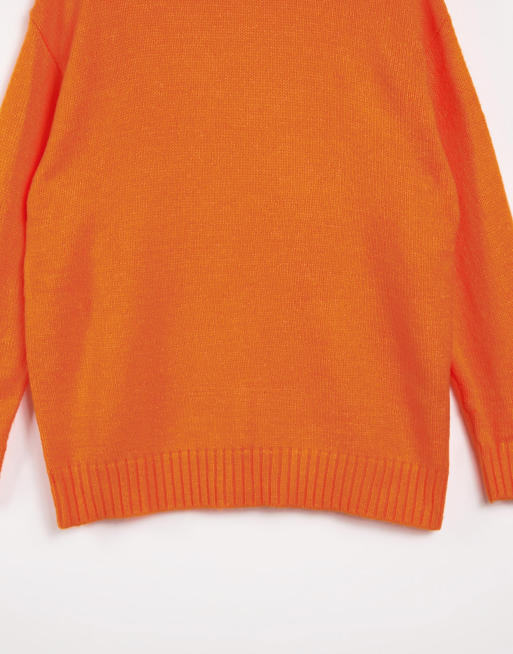 Bershka high neck oversized sweater in fluro peach Very well made.