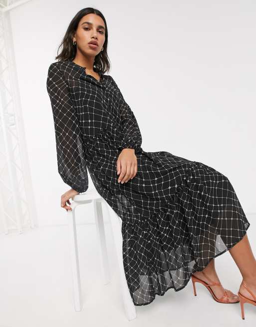 Vero Moda Robe chemise mi longue en mousseline carreaux Noir Very well made.