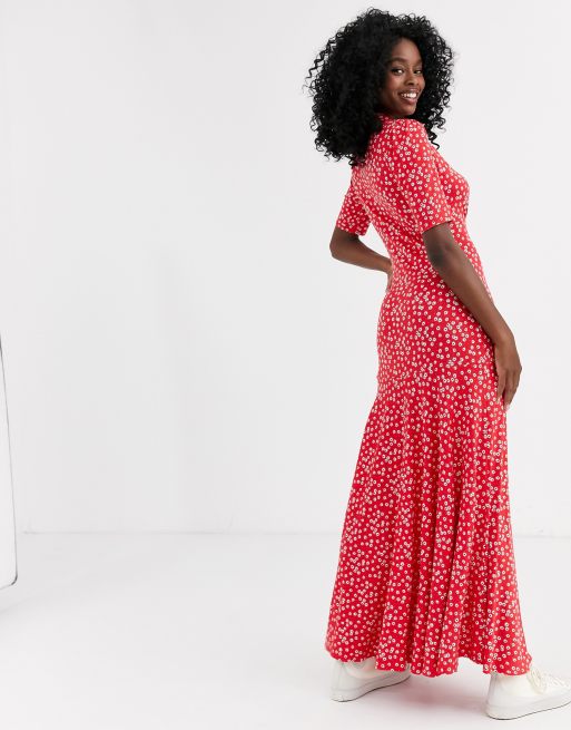 ASOS DESIGN Robe chemise longue manches courtes avec imprim petites fleurs Rouge Very well made.