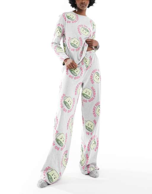ASOS DESIGN Tall matcha long sleeve top pants pajama set in gray heather Very well made.