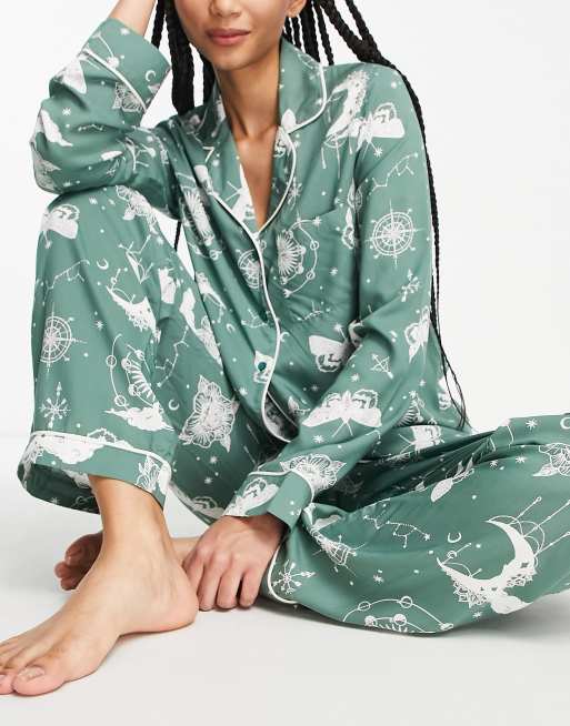 ASOS DESIGN Tall modal astrology shirt pants pajama set in sage Very well made.