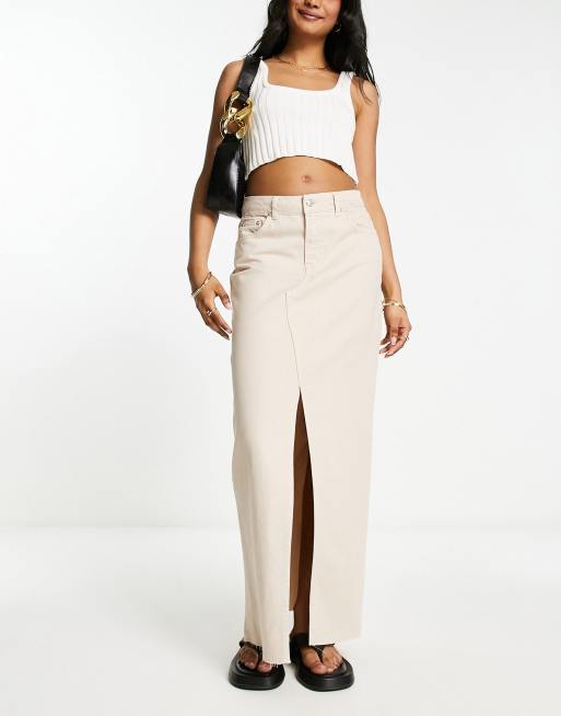 ASOS DESIGN Jupe longue l g re en jean fendue sur le devant Taupe Very well made.