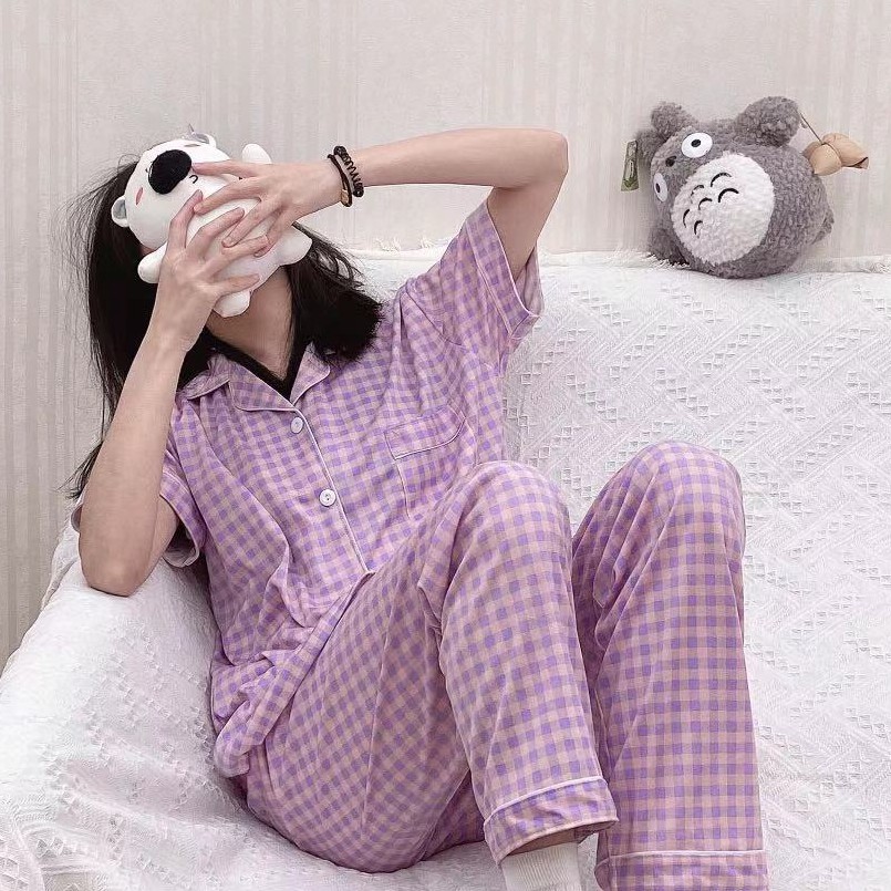 Women s Summer Check Loose Pajama Homewear with Pocket FP533 Very well made.