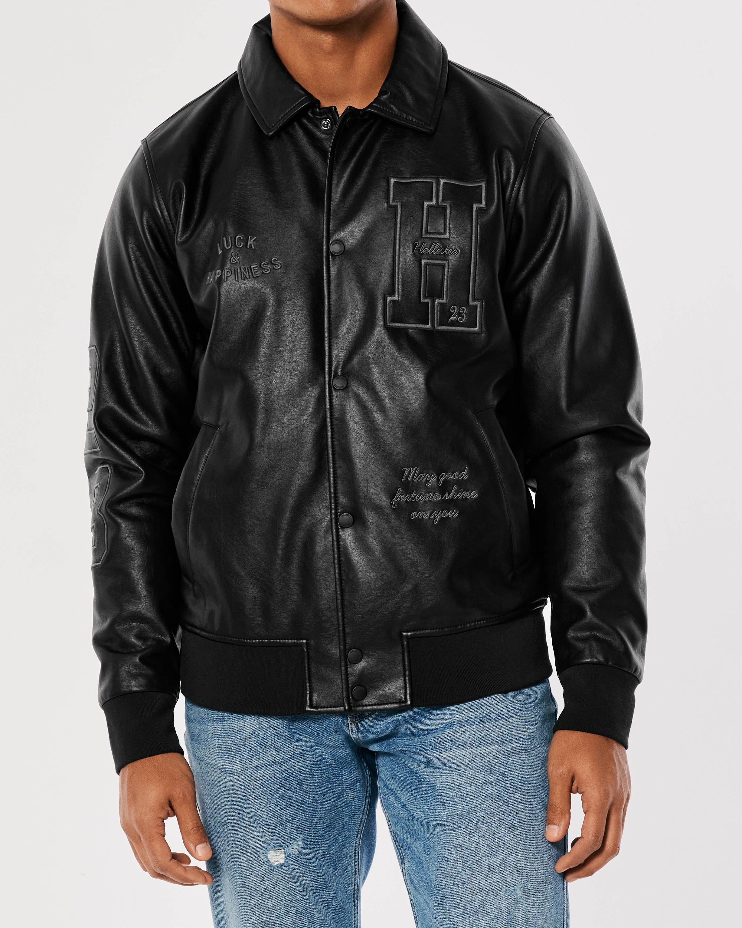 Hollister Lunar New Year Faux Leather Graphic Applique Bomber Very well made.