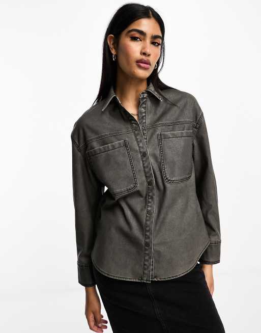Stradivarius Chemise en imitation cuir Noir d lav Very well made.