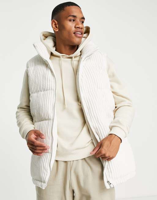 Doudoune sans manches en velours c tel Cr me HOMME H M FR Very well made.