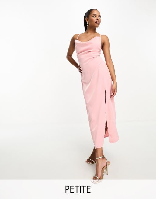 Vestido largo rosa p lido con cuello desbocado y lazada en la espalda de sat n exclusivo de In The Style Petite Very well made.