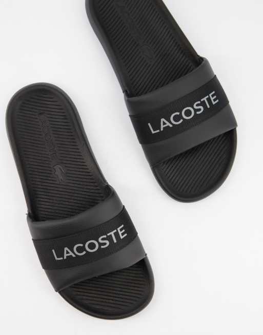 Lacoste logo croco slides in black Very well made.