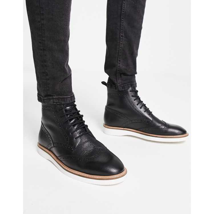 ASOS DESIGN Veterboots met brogue details in zwart leer met Very well made.