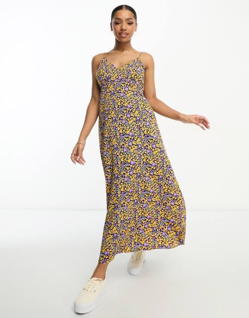 Pieces Maxi jurk met V hals en gekruiste achterkant in fijne paarse bloemenprint Very well made.