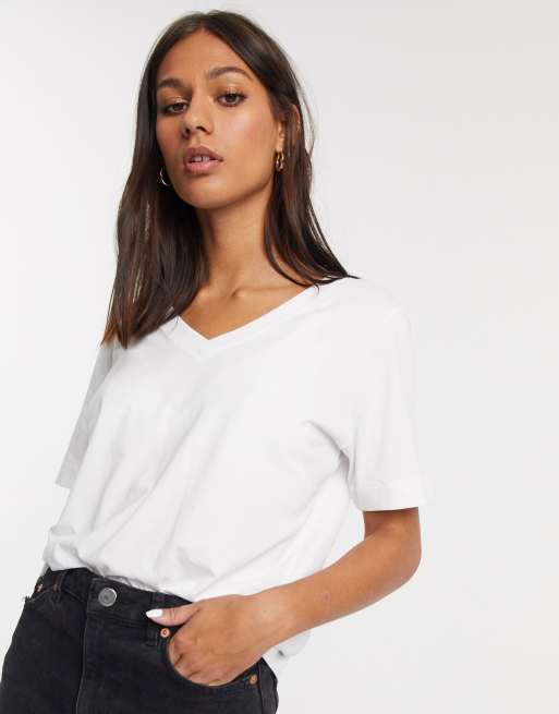 Selected Femme T shirt col V manches courtes en coton Blanc Very well made.