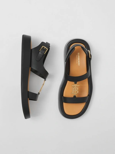 Burberry Tb Leather Sandals in Black Lyst Very well made.