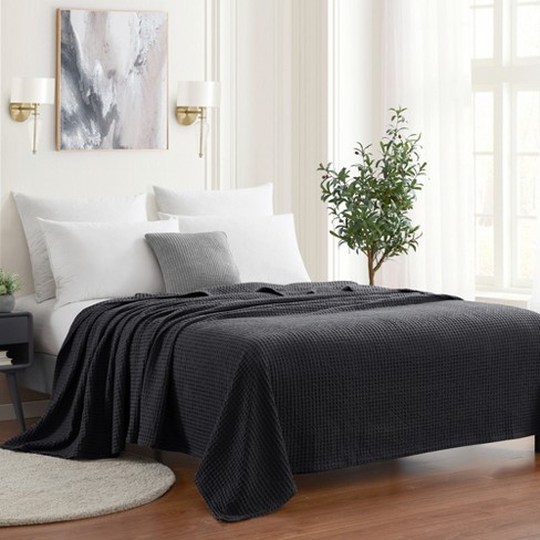 100 Cotton Blanket Luxurious Breathable Waffle Weave Design by Sweet Home Collection King Black Very well made.