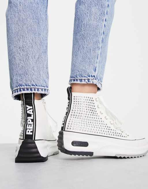 Replay Baskets montantes strass Blanc Very well made.