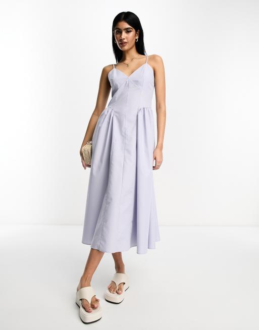 ASOS DESIGN Robe patineuse mi longue en coton taille basse Bleu ballet cendr Very well made.