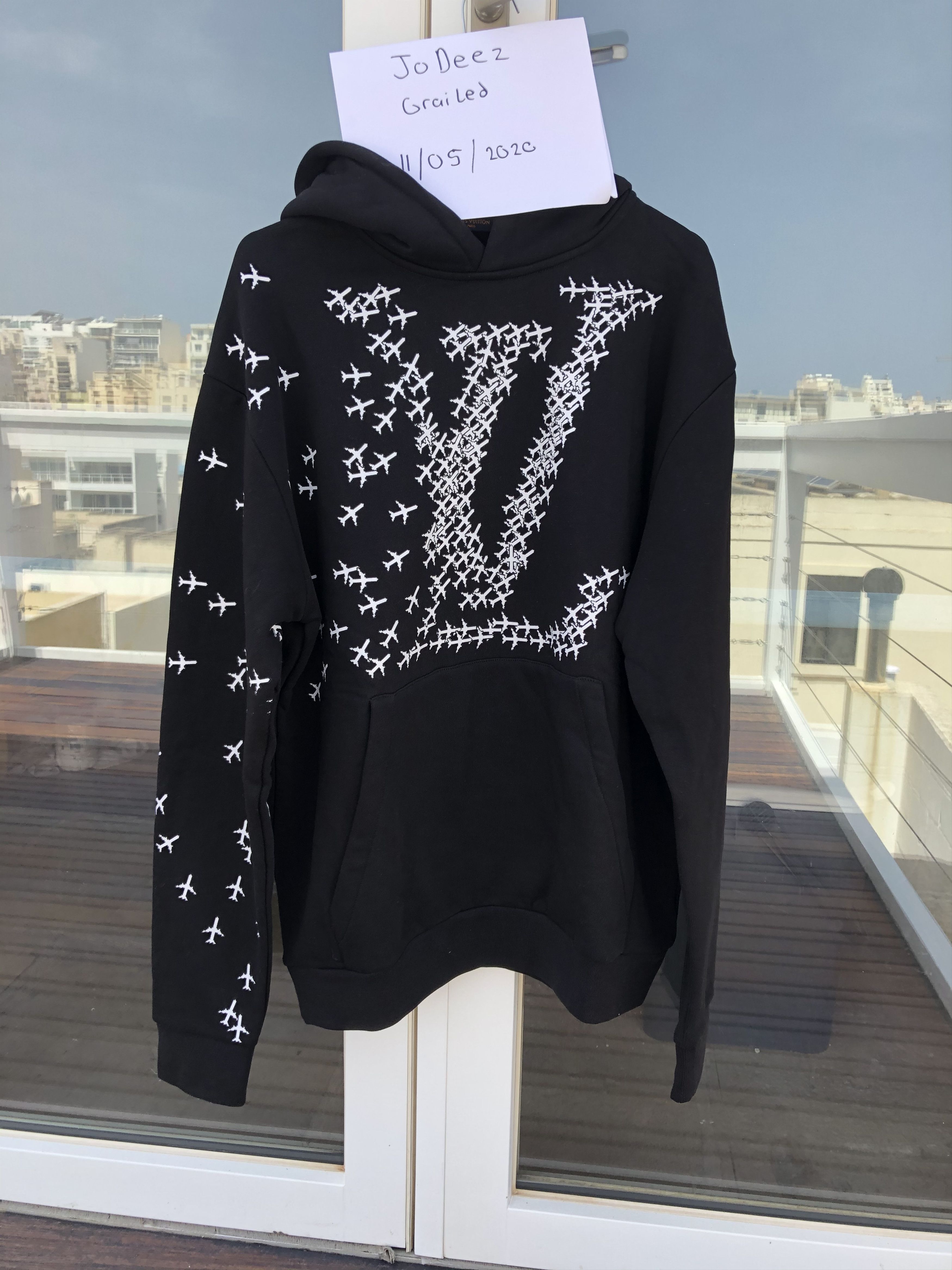 LOUIS VUITTON LV Planes Printed Hoodie Black Size Large 900.00 Very well made.