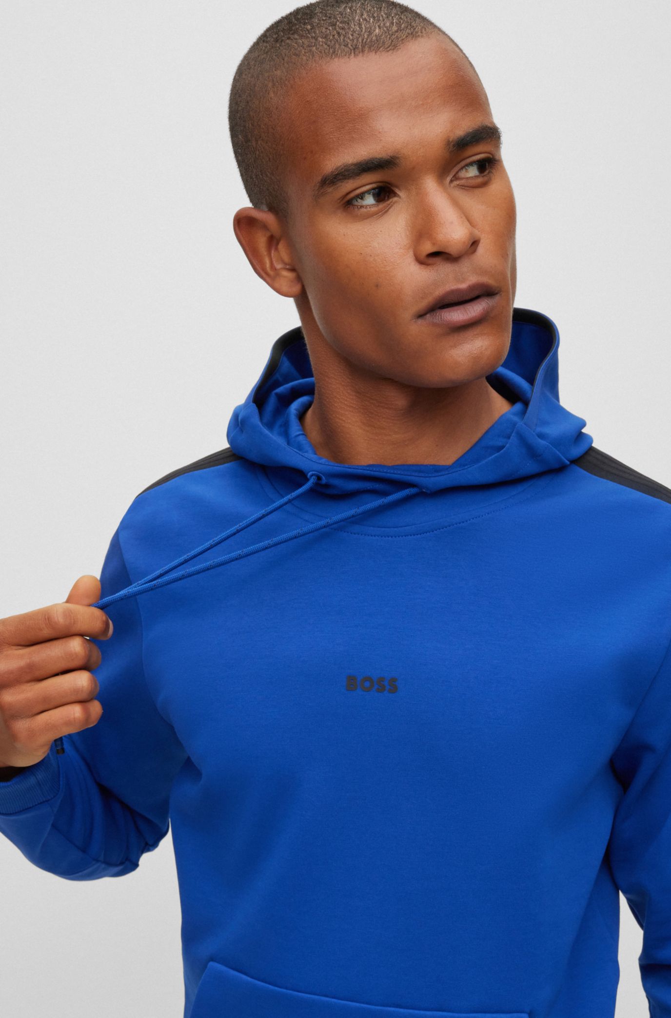 BOSS Cotton blend regular fit hoodie with tape trims Very well made.