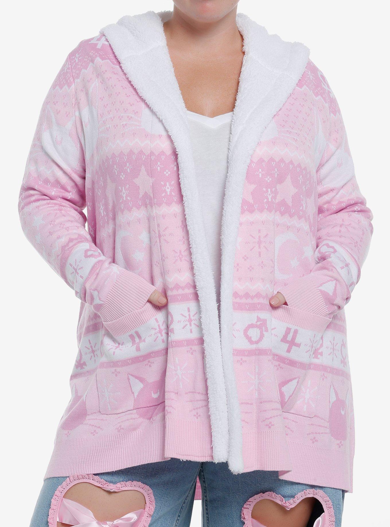 Pretty Guardian Sailor Moon Pink Fair Isle Sherpa Girls Open Cardigan Plus Size Very well made.