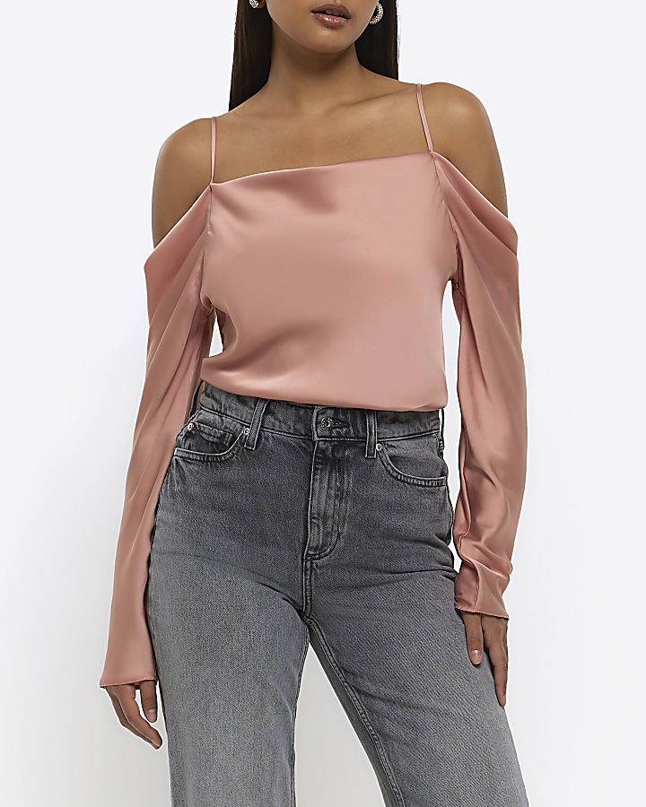 River Island Pink Satin Off Shoulder Top Lyst Australia Very well made.