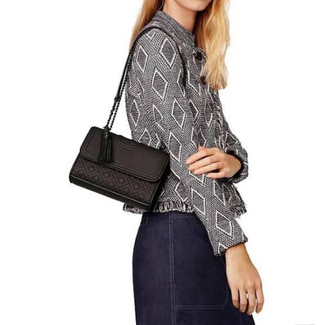 Tory Burch Fleming Convertible Shoulder Bag Black Silver Very well made.