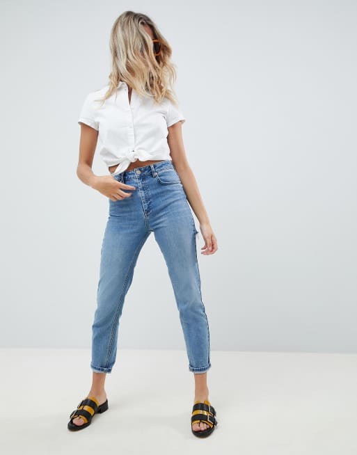 ASOS DESIGN Farleigh Jean slim mom taille haute d lav d chir sur le bas des fesses Very well made.