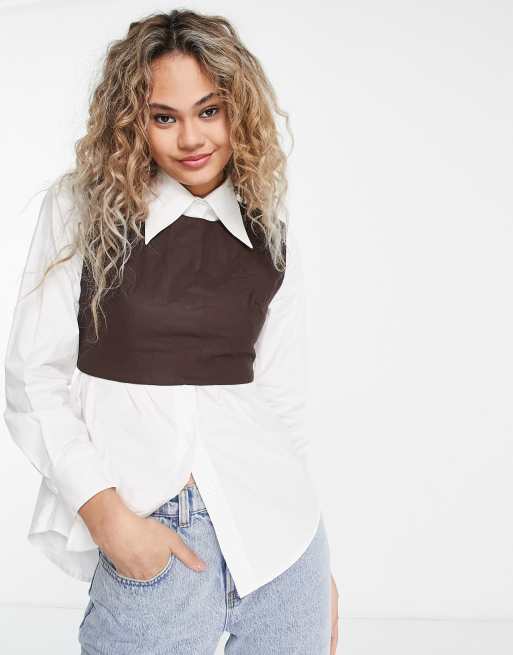 Urban Revivo quilted tank top in brown with under shirt in white Very well made.